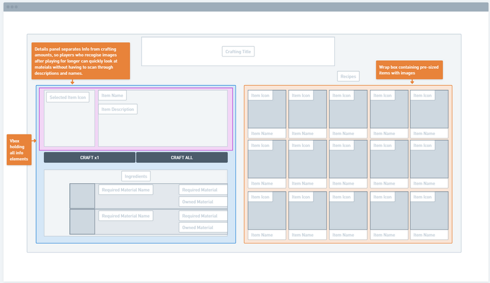 Here is the UI system I made for a fantasy themed, 3rd person top down adventure game. It included an inventory system, shop, crafting menu, player vitals, mini map and ability buttons.